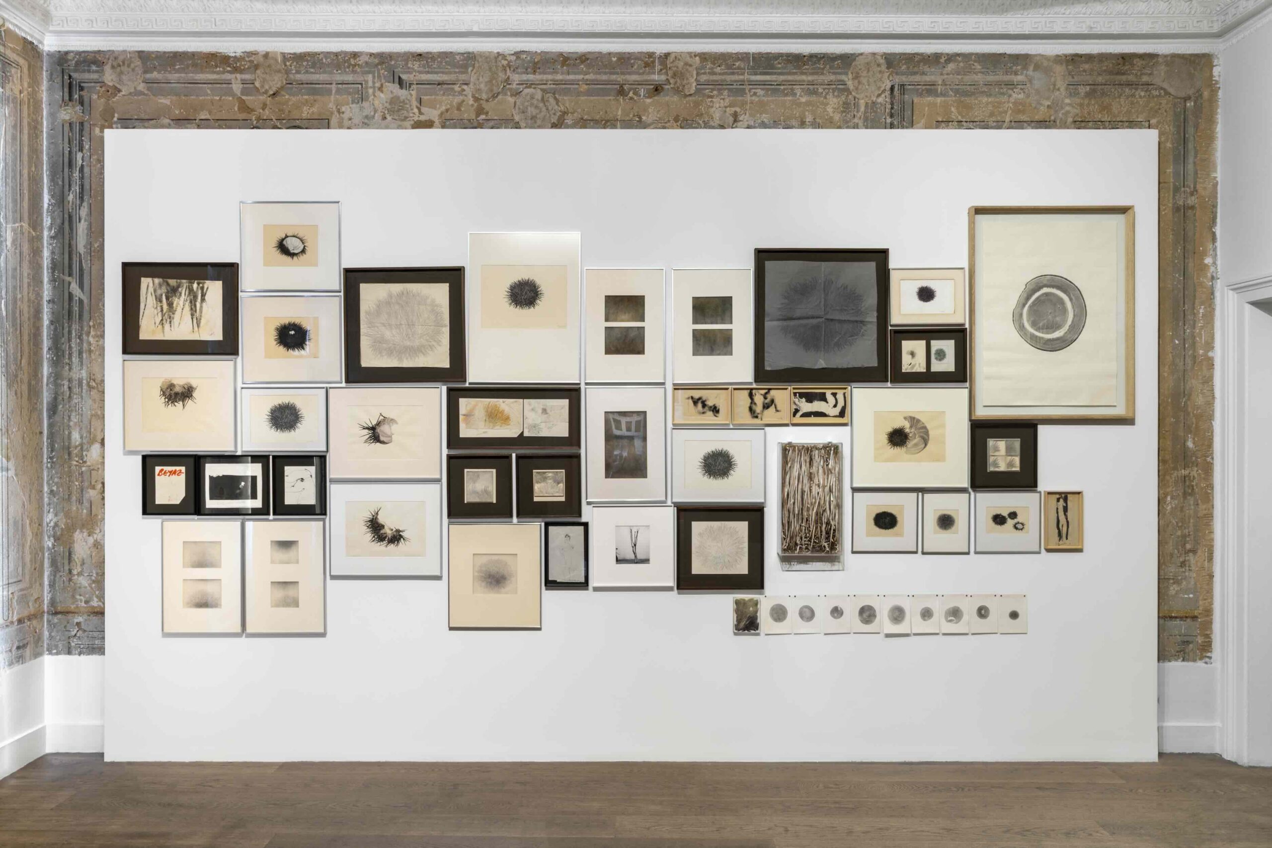 Kayada Büyüdüm Ben sergisi, bir çağdaş müzik eserinin yapısındaki gibi, sürprizlerle dolu adım adım açılıyor. İlk salonun atmosferine adım atarken, izleyiciyi yoğun bir estetik deneyim bekliyor. Siyah-beyaz skalada üretilmiş yaklaşık 40 adet iş; Kurtiç’in deniz florasından esinlenmiş deniz kestaneleri ve çeşitli teknikler kullanarak oluşturduğu özel çalışmaları içeriyor.