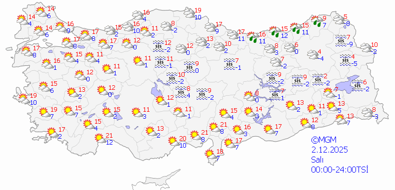 Parçalı ve az bulutlu geçeceği tahmin ediliyor. Sabah ve gece saatlerinde yer yer pus ve sis bekleniyor.